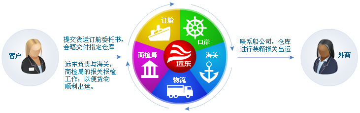 B 出口物流服务是指远东为上述服务对象提供由中国各地到世界主要港口、内陆点的海运、空运出口的订舱,报关、